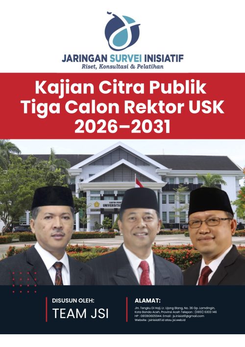 Jaringan Survei Inisiatif (JSI) merilis hasil kajian citra publik terhadap tiga calon Rektor Universitas Syiah Kuala (USK) periode 2026–2031, yaitu Prof. Dr. Ir. Agussabti, M.Si., IPU, ASEAN Eng; Prof. Dr. Ir. Marwan; dan Prof. Dr. Mirza Tabrani, S.E., M.B.A., D.B.A.
